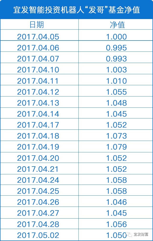 宜发财富近期将推出公司的旗舰产品-宜发智能投资机器人"发哥",据了解,"发哥"拥有超高速的运算能力,能够处理大量复杂和繁冗的计算,而且能够为不同风险偏好的用户提供的最佳资产配置方案,提供最优的风险/报酬比,让你从浩繁枯燥的资产配置流程中解脱出来。